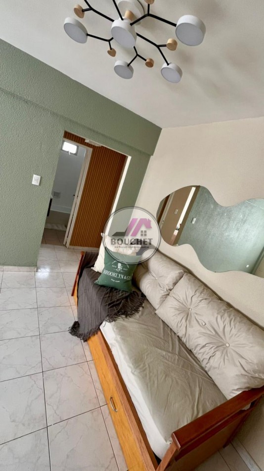 El baño es completo, con bañera y ventilacion natural. El dormitorio presenta una distribución muy cómoda y luminosa con placares empotrados.