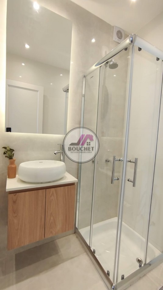Dispone de baño completo, acorde al estilo moderno del departamento.