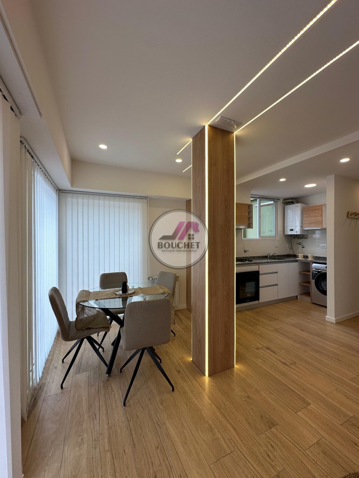 Recientemente reciclado por completo, el departamento se presenta amoblado y listo para habitar, incluyendo lavarropas y sistemas de calefacción eficientes por radiadores con caldera propia.