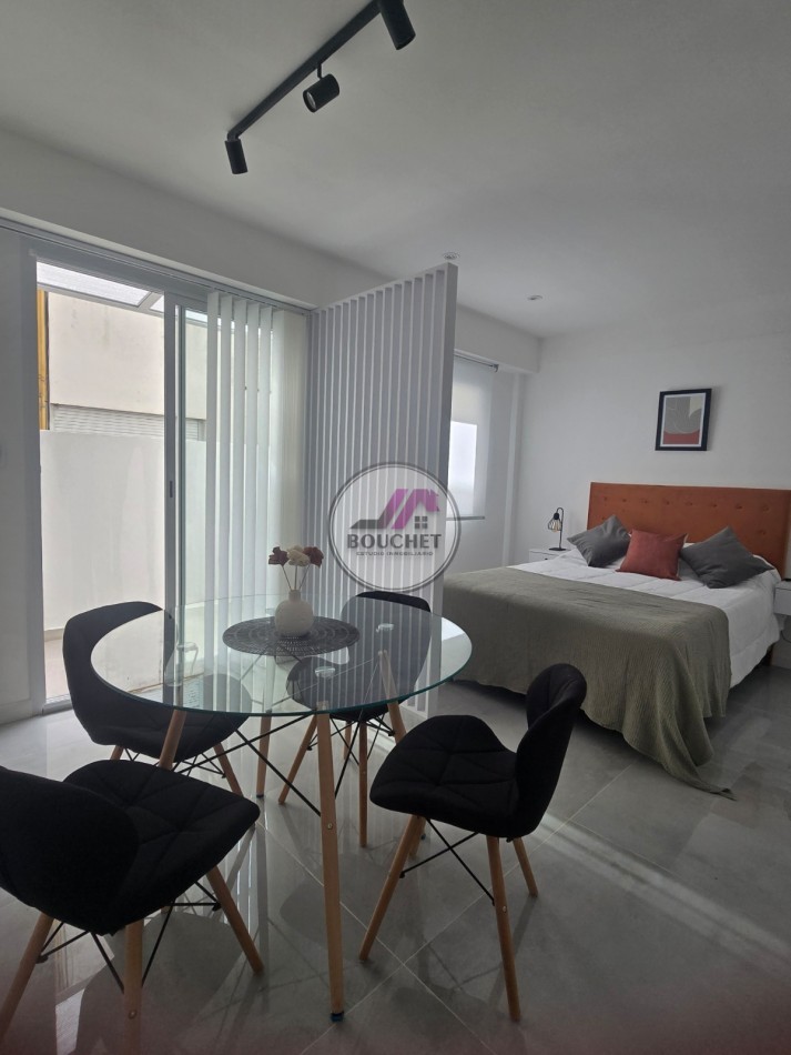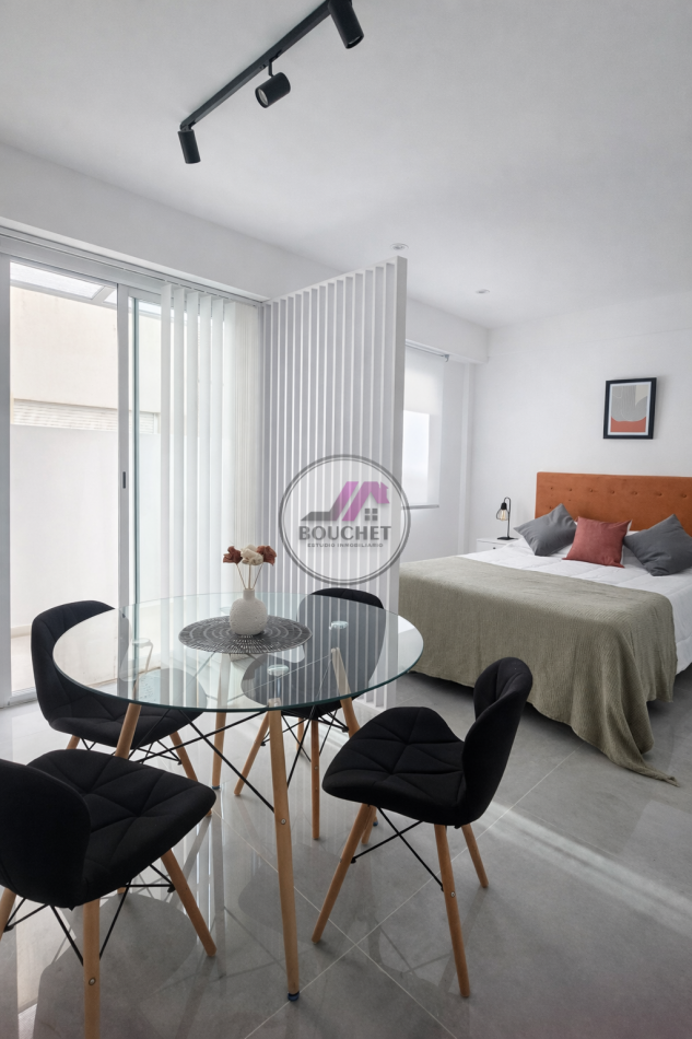 Este departamento reciclado y amoblado de 34 m² totales aproximadamente (29 m² cubiertos + 5 m² descubiertos) combina el encanto de una construcción solida con todas las comodidades modernas. Al ingresar, se aprecia inmediatamente su luminosidad, potenciada por sus aberturas DVH que garantizan eficiencia energética y confort acústico. El ambiente principal integra de manera inteligente el living, dormitorio y cocina amueblada, creando un espacio acogedor y práctico para la vida diaria.