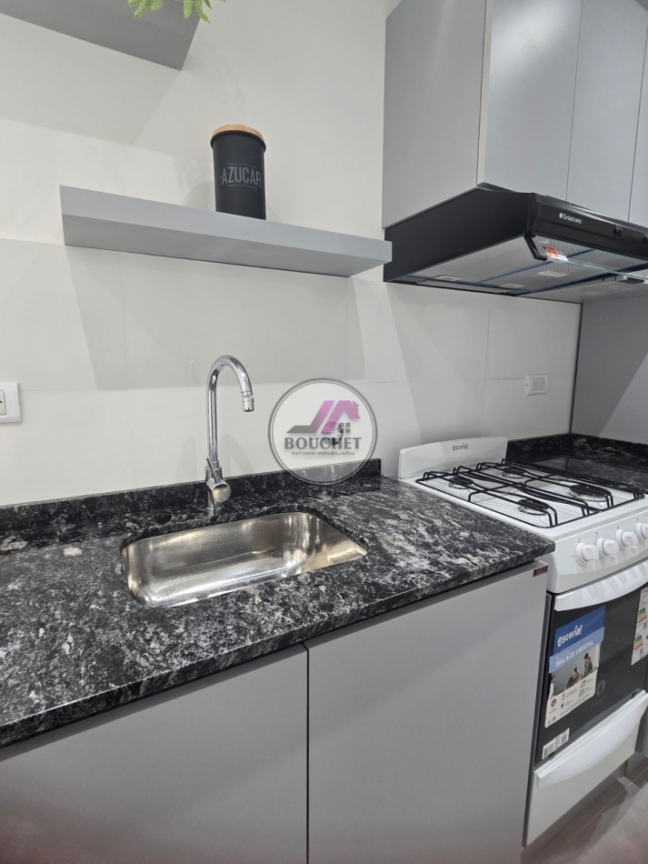 El balcón con parrilla es el protagonista indiscutido, ofreciendo un rincón perfecto para disfrutar de momentos al aire libre. La propiedad cuenta con baño completo con mampara y valiosas instalaciones como calefactor a gas, lavarropas, y obra de gas recientemente realizada para total tranquilidad. Todo el equipamiento es a estrenar, con detalles LED, y conectores USB.