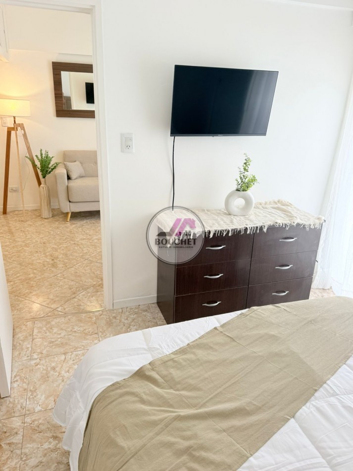 Con 28 m² totales distribuidos inteligentemente, este departamento maximiza cada centímetro. Los 25 m² cubiertos incluyen un acogedor ambiente dividido que permite separar áreas de descanso y living, mientras que los 3 m² descubiertos corresponden a un balcón privado con vista abierta a la ciudad, ideal para disfrutar de atardeceres marplatenses. La propiedad destaca por su luminosidad excepcional, con amplias ventanas que inundan de luz natural todos los rincones.
