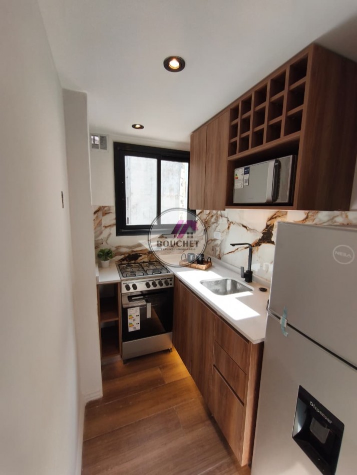 Con 28 m² totales y cubiertos, este espacio reciclado y amoblado combina funcionalidad y luminosidad excepcional, ideal para quienes buscan comodidad y estilo.